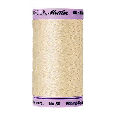 This is Mettler's most popular multi-use thread, soft and lustrous, colorfast and fade/shrink resistant. Can be used for both machine and hand sewing - great for garment sewing, quilt piecing and machine quilting. Suggested needle: 70/10 or 80/12. Mettler Silk Finish thread, 547 yard spool. 50 weight/3 ply, 100% Egyptian long staple, mercerized cotton. Blush White, color #810/0778