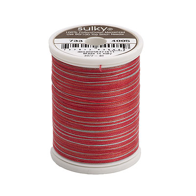 These popular variegated threads from Sulky are a masterful blend of different colors within the same range of tone and intensity, with random, subtle color changes every 2-1/2 to 5 inches. Blendables add depth and dimension to freemotion embroidery, fashion sewing and home dec projects. Made of the highest quality, long-staple, 100% Egyptian Cotton on snap-end King Spools. Ideal for quilting, thread lace, bobbin work, thread painting, red work and decorative embroidery. Recommended Needle: 90/14 Topstitch. Sulky Blendables, 500 yard 30wt. king size snap-spools, color #4005, Sulky Color: Strawberry Daiquiri